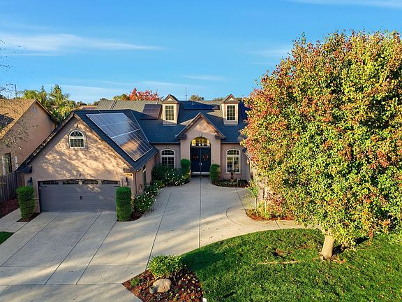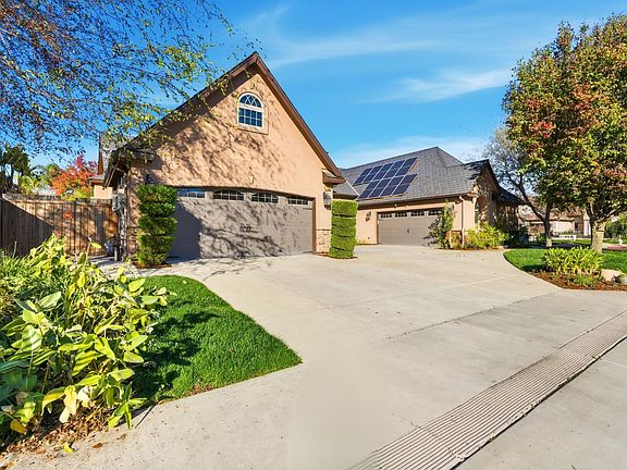 Discover an extraordinary residence at 170 W Pioneer Way--a stunning Pinnacle home situated in one of Northwest Hanford's most prestigious neighborhoods. Offering 4 bedrooms, 3 full baths, an office, and 3305 sq ft of refined living, this property blends timeless craftsmanship with elevated modern luxury.A grand double-door entry welcomes you into an impressive main living space where soaring ceilings, a dramatic wall of windows, and a beautifully framed fireplace create a breathtaking first impression. The scale and openness of this room set the tone for the rest of the home--grand, inviting, and designed for effortless entertaining.The adjacent formal dining room exudes sophistication, easily accommodating a banquet-sized table, making it ideal for gatherings, holidays, and elegant dinner parties.The remodeled kitchen offers a flawless layout with a generous center island, abundant prep surfaces, stainless steel appliances, gas cooking, and a custom built-in wine refrigerator. Designer paint, custom built-ins, crown molding, surround sound, and statement lighting bring a polished, curated vibrance to the space. A dedicated office with French doors and an oversized laundry room with a utility sink and extensive cabinetry add everyday convenience.The owner's suite is a sanctuary--grand in size and beautifully designed with custom closet shelving, an oval soaking tub, walk-in shower, dual vanities, and a dedicated makeup area. All secondary bedrooms are spacious, well-proportioned, and filled with natural light.The backyard transforms the property into a private resort. Enjoy a luxurious heated pool and spa, complete with a Baja step and water feature, all framed by manicured, low-maintenance landscaping. The covered patio offers a serene place for outdoor dining, while a standout feature of the yard is the resort-style firepit lounge--an oversized sculpted concrete fire bowl surrounded by contemporary seating, lush palms, and warm natural textures. It is an extraordinary space for sunset gatherings and year-round relaxation.Car enthusiasts will appreciate the four-car garage, offering two separate garage spaces ideal for vehicles, toys, or a workshop. The home also includes owned solar, enhancing long-term efficiency and value.Homes of this caliber architecturally striking, and located in one of Hanford's premier neighborhoods--rarely come to market. This is a true dream property