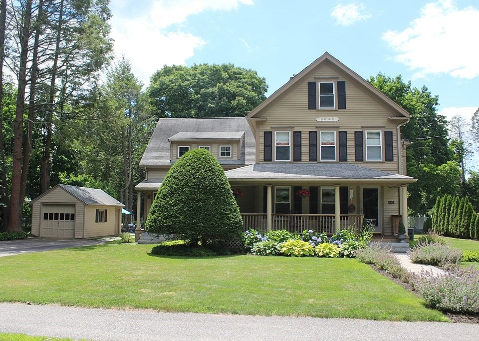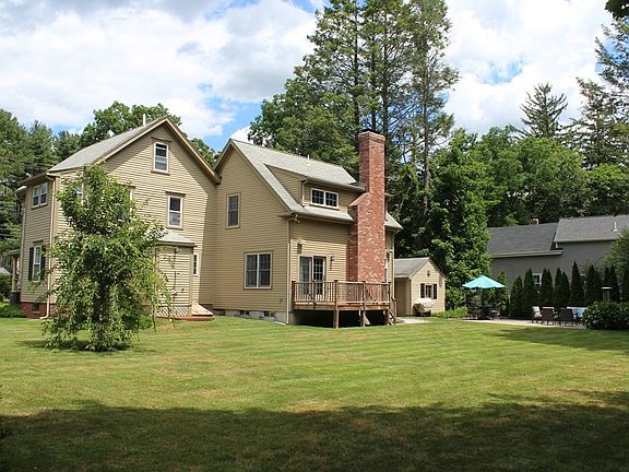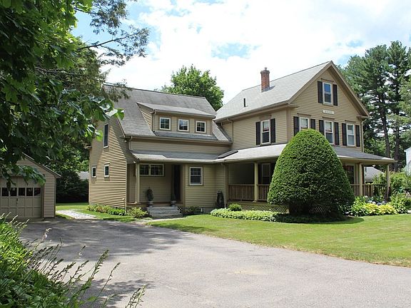 Meticulously maintained and transformed 1860 Farmhouse w/covered wrap around porch includes a 2005 addition. Historic charm and modern-day amenities strike a balance between past and present. This unique home provides radiant heat, central AC, laundry room on first floor, stainless steel appliances and stunning veined soapstone counter tops to name a few. This home presents a possibility of a 4th bedroom on the first floor. The additional bonus area on the lower level can be used as an entertainment/media room. The main living area is punctuated by an oversize fireplace with a raised hearth and granite mantel. The 2nd floor features 2 full bathrooms and 2 bedrooms plus a massive master suite. The suite includes a full bath, vaulted ceilings, a custom walk-in closet, brick fireplace w/mantle and adjoining office /den. The maintained grounds boast a backyard resort like oasis. This spectacular home is located close to the high ranking Wayland schools, all major routes and Boston