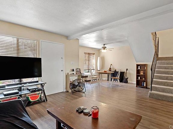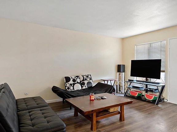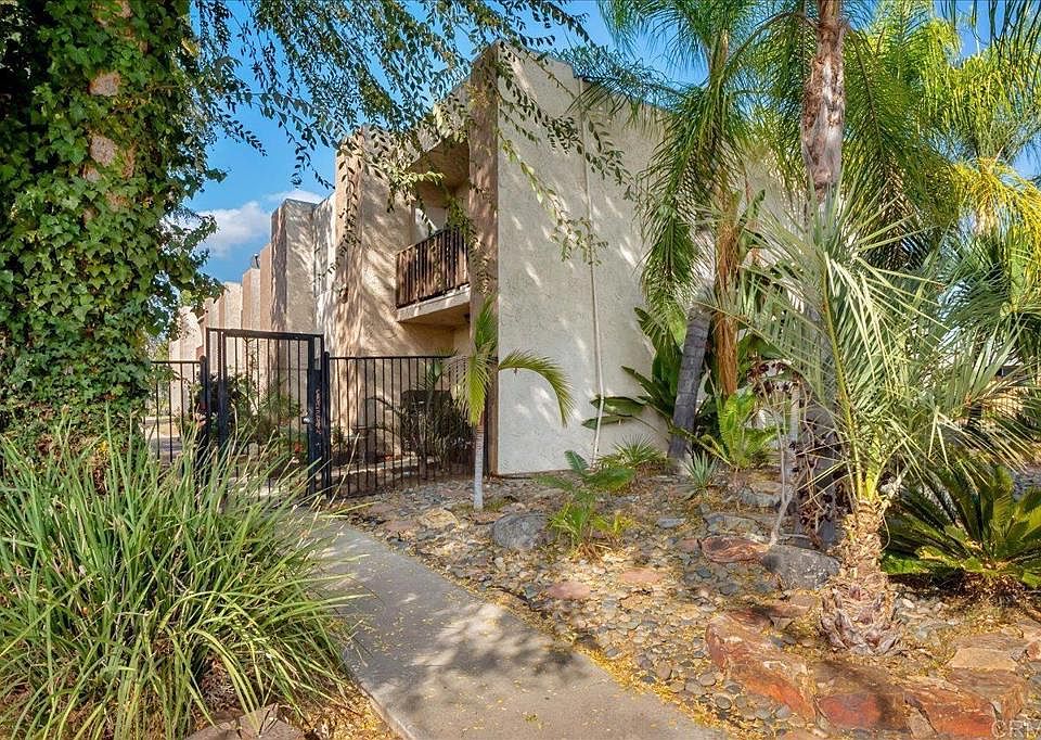 Quiet condominium unit with only 12 homes. Wonderful afternoon breeze cools whole condo! Three beds, 1 and 1/2 bath townhouse. Newly renovated with quartz counter tops and shaker cabinets in kitchen, and vinyl flooring upstairs and down. Bathroom updated with shower/tub combination, with quartz vanity. Private patio upstairs off of bedroom, and balcony off of master bedroom. Covered and secure laundry area directly outside kitchen. The complex has a large in-ground community pool. Attached single car garage, walk directly into your home after you park - no melted ice cream! Also a single covered parking space, and one uncovered parking space. All electric appliances. HOA pays for hot and cold water as well as refuse collection and wastewater. Minutes from Interstate 15, walking distance to nearby Juniper elementary school, with Trader Joes and Vons closeby as well.