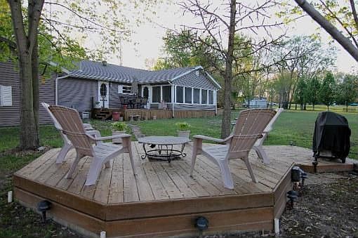 Country living reatreat, only moments from town! Living room has a corner wall-to-ceiling stone fireplace w/gas log. Stainless appliances are included along with a counter top stove, in-wall oven and microwave. Custom corian solid surface counters w/integrated sink and newer laminate flooring. Master suite includes a walk-in closet and newly remodeled bath featuring unique glass bowl vanity with pedestal faucet. French doors from Great Room open out onto sizeable screened porch. Sundance Capri spa is included as well as patio furniture. Office/Breakfast nook features large solid oak book shelf system. 1/2 bath has a "celebrity-style" makeup-table and large mirror surrounded by vanity lighting. Berber carpeting through most of the home. Forced air furnace & central air replaced in 2003. Gas water heater installed in 2005. Main breaker box replaced in 2011. Vinyl siding, & new roof/decking. Attached 2-car garage with adjoining workshop, 3 decks including octagon deck with fire pit.
