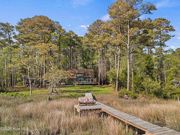 A cozy and unique cabin in the woods by the sea now awaits a new owner seeking solitude. Beautiful views from ICWW to total privacy of wooded acreage, this 3-acre plus property sits a few miles South of downtown Beaufort with quick access to everything but complete privacy within a few minutes. Current Owners purchased this home with the intention of making this their forever home. They worked tirelessly to create this lovely sanctuary. New dock, rebuilt decks, cleared areas on the grounds, and added a wonderful walk in master shower. RV parking pad, green house , shed. The possibilities are endless. Create the space you want from the BONUS room. Many possibilities with the extra acreage and a possible family compound (check with county). Live big , pay small . Only utilities mandatory to hook up is electric . Gas for cooking and hot water , well water and treatment . Almost off the grid ! Special place near a special town. Most of the decor and furnishings will convey . Seller will provide an exceptions list.