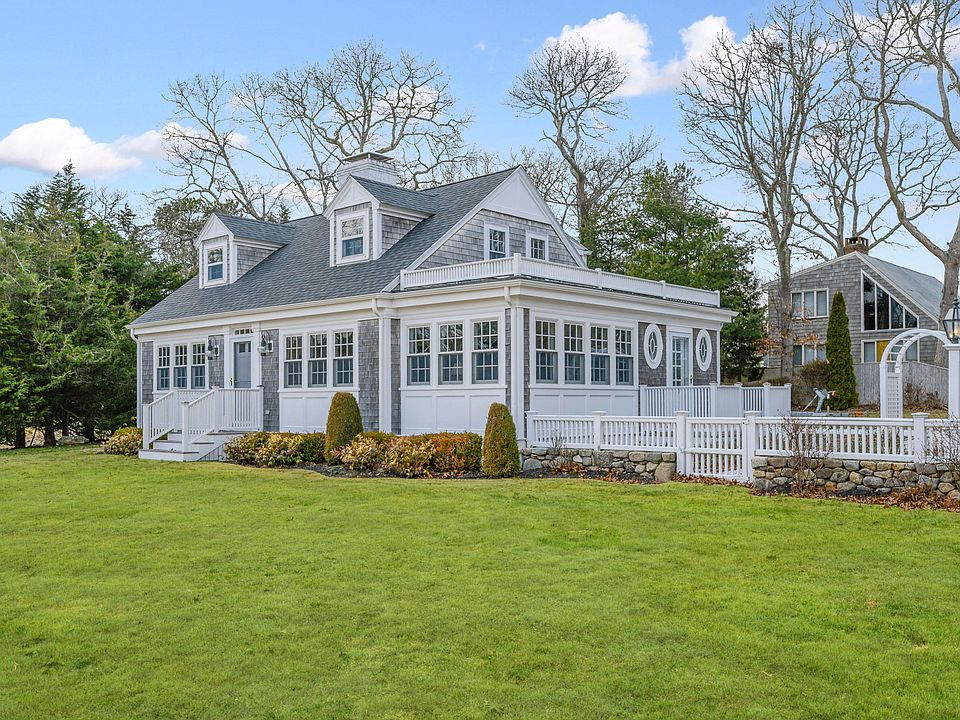 Charming cape style home with water views and private beach rights! This quaint sophisticated cape getaway is set between the Pocasset Harbor and Buzzards Bay. Over the last few years, this home has gone through a transformation adding beautiful finishes and additional living space by esteemed builder Peter Coffin. Offering a sun-drenched living room and master suite with expansive views of the harbor in addition to an attached bunkhouse for guests. This home is wonderful for entertaining outside and in with 3 working fireplaces adorning the center chimney, an expansive deck, and garden area. The first floor boasts beautiful hardwood floors throughout with coffered ceilings in the living room, tiled baths, and eat-in kitchen. The second floor has two additional bedrooms and a full bath. Take a stroll to the Beverly Associates private sandy beach and watch the sunset or explore the harbor by kayak. This is a special cape escape waiting for you!