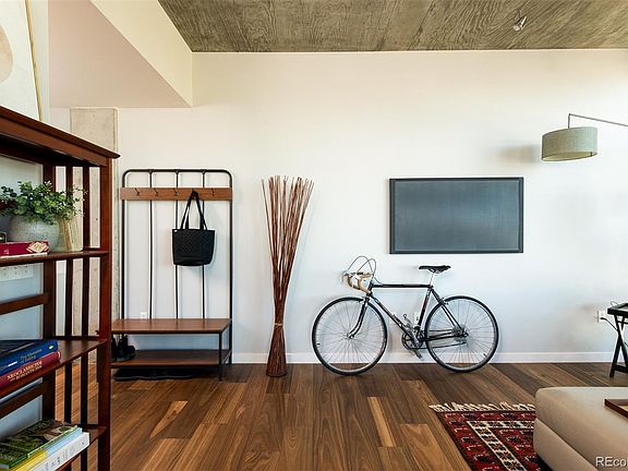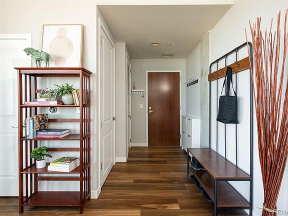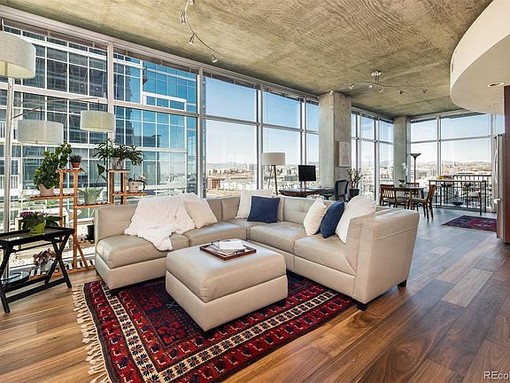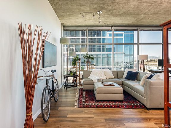 Experience the best of urban living in this 10th-floor condo at the Glass House in Riverfront Park. Boasting breathtaking city and mountain views from any angle, this residence has been thoughtfully updated with brand new engineered hardwood flooring, fresh paint, and a new kitchen range. Floor-to-ceiling windows flood the space with natural light, highlighting the open-concept design and clear sightlines to the city and mountains just beyond. The kitchen features stainless steel appliances, a chic subway tile backsplash, and ample seating space for a dining room or eat-in kitchen island. The bedroom offers a walk-in closet, west-facing views of the Front Range, and fully shuts off from the rest of the unit for added privacy. Amenities at the Glass House include an updated fitness center with discounted classes included as part of the HOA, 24/7 concierge service desk with package holding and secure mailboxes, full-service coffee bar on the 8th floor with a community space available for reservations, an outdoor pool and barbeque area, and a vibrant community terrace with a firepit—ideal for socializing and unwinding. A reserved parking spot and storage unit add convenience to this residence. Nestled in one of Denver’s most coveted neighborhoods, Riverfront Park offers unbeatable access to parks, dining, shopping, and Union Station. Whether you're looking for a stylish primary residence or an exceptional investment opportunity, this condo delivers on every level.