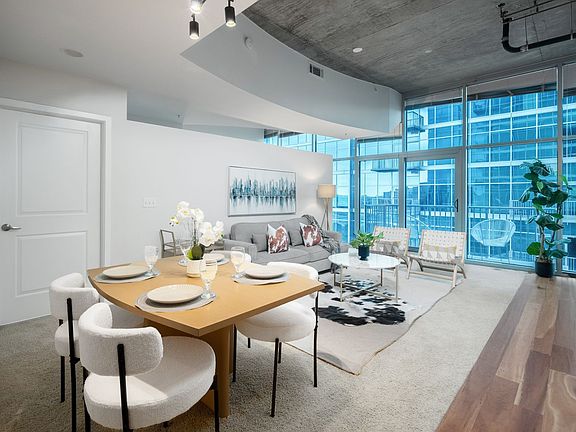 Enjoy living in luxury with floor to ceiling windows, city and mountain views, with an open floor plan bathed in natural light! The kitchen has stainless appliances, plenty of counter space and cabinets, along with a built in desk area to use as you wish. You have a balcony to sit outside and enjoy the air on the 11th floor, with no neighboring balconies above or next door!