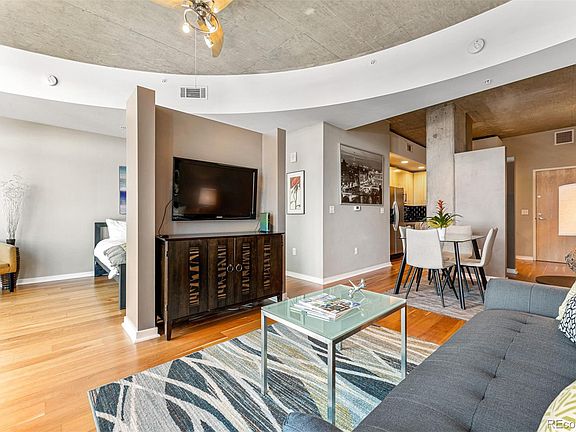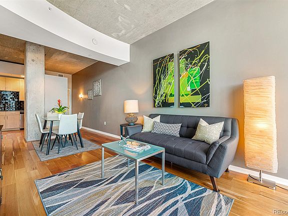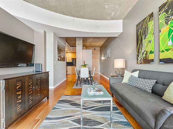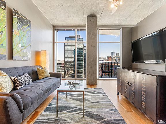 Enjoy city living at its very best in the resort-like community of the Glass House! This 15th floor, loft-style unit stuns with captivating views of the mountains, Denver cityscape and Coors Field. 10-foot walls of windows fill the space with an abundance of natural light. The open floor plan showcases luxury features including hardwood floors throughout, slab granite counters, stainless appliances, 42-inch maple cabinets, a smart thermostat and in-unit laundry. The primary bedroom offers a full ensuite bath, large closet with an installed organization system and private balcony. Don’t miss the deeded parking space in the secure garage plus a dedicated storage unit for overflow items and gear. The seller is also willing to negotiate the purchase of furniture as desired. The Glass House boasts the ultimate in high-rise living with amenities such as a 24-hour concierge, pool, outdoor entertaining area with grills & fire pits, theatre room, lounge with complimentary breakfast on the weekends and membership at the Riverfront Athletic Club. With amazing parks, trails, shopping, and dining right out the door and easy access to I-25 and DIA via Union Station, this home truly has it all!
