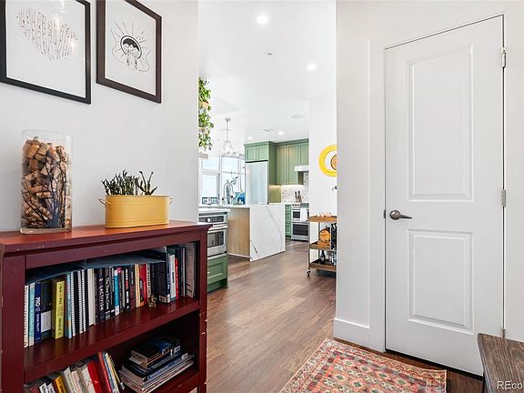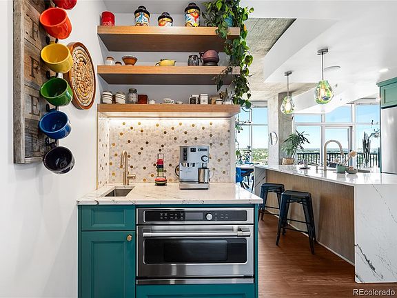 FULLY REMODELED IN 2024 - THIS UNIT IS READY FOR YOU! If your wish is to watch every sunrise, and every mountain sunset while living in Denver - this 17th Floor corner unit at the Glass House is just perfect for you! As you enter, you will find a coat closet and room to make your own welcome area to kick off your shoes - because you are HOME! The kitchen was recently remodeled with so many amazing features! Cambria Quartz covers the new island, wet bar area and around the Cafe Induction Stove/Oven combo. The refrigerator + hood are Miele; the dishwasher + microwave/oven combo are matching Cafe for the perfect mix of luxury and function. The wet-bar was added and features a small sink, open shelving for the perfect spot to make your morning coffee or a happy hour cocktail, which will best be enjoyed on the personal northwest facing balcony, or while dancing in the kitchen with the bluetooth speakers in the ceiling! A new pantry was added with cabinets to match the kitchen that have pull out drawers inside and a new stackable washer/dryer. Both newly remodeled bathrooms are classic with white and gold tones, lighted circle mirrors and Woodbridge toilets that are heated + feature bidets and more! No details were missed to enhance the floor-to-ceiling glass views - including dark Luxury Vinyl Flooring throughout, and new tile in the bathrooms. This unit also includes a new electric high efficiency heat pump, new AC unit and a whole unit humidifier to keep you comfortable every day of the year. The amenities at the Glass House include: fitness center, swimming pool, fire pit, 24 hour front desk, club lounge, media center and more! You (and your plants) are not going to want to skip a tour of this one of a kind luxury condo!
