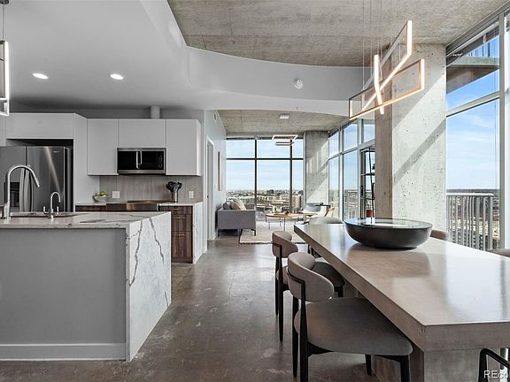 Perched on the 19th floor of one of Denver’s most iconic residences, this fully remodeled northeast corner unit offers stunning city views through expansive 10-foot floor-to-ceiling windows. Flooded with natural light, this thoughtfully redesigned home features over $150,000 in upgrades. The gourmet kitchen boasts new cabinetry, quartz waterfall countertops, premium stainless steel appliances, and smart pantry/laundry storage solutions. The open-concept layout, soaring ceilings, and new modern light fixtures throughout create a bright and sophisticated urban retreat. The spacious primary suite includes a spa-inspired bath with a new vanity, Toto toilet, walk-in shower, blackout shades, and a custom walk-in closet. The secondary bedroom, located on the opposite side of the unit for added privacy, features a large walk-in closet and a fully renovated second bathroom. Additional updates include fresh paint throughout, custom built-in foyer storage, and an expanded entry closet. Residents enjoy access to top-tier amenities, including a rooftop pool, state-of-the-art fitness center, concierge services, and private security. Located in Riverfront Park, directly across from Commons Park and steps to the Platte River Trail, Union Station, LoHi, Ball Arena, Coors Field, and premier dining and nightlife. This unit includes one assigned garage parking space. With 24-hour building and neighborhood security, this turnkey home also presents a strong investment opportunity in one of Denver’s most desirable rental markets.