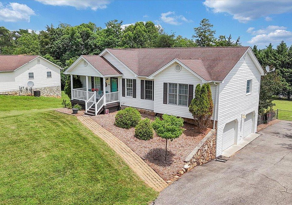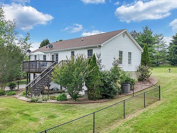 Enjoy one floor living in a quiet neighborhood less than 1 mile to deeded lake access and the beautiful waters of SML. This charming home features 1,842 finished SF with 3 bedrooms, 3 full baths, finished lower level, & oversized 2 car garage on 0.52 acres. From the moment you enter you'll feel right at home. Entry level hosts 3 BR & 2 BA, living room, laundry, & eat-in kitchen with an island leading out through the French doors to the rear deck, perfect for entertaining, overlooking the generous fully fenced rear yard w/mature trees. The primary BR boasts an attractive tray ceiling, 2 large closets, ensuite bath w/whirlpool tub, walk-in shower & double sink vanity. Finished lower level is currently decorated as 4th bedroom/office and rec room. 2 minutes to Scruggs Road and stores etc. Lower level also has a full bath, sitting area, gas fireplace, and French doors that lead out to the rear patio. Oversized 2 car garage with work bench and shelving for extra storage. The rear yard is fully fenced with black vinyl chain link, perfect for children and pets and includes a set of double gates providing a 12ft opening and an additional 4ft gate. Enjoy extra parking and storage space or set up your workshop in the 25ft x 15ft detached metal shop building with electric, rollup door, and side entrance man door. Located in Stripers Landing, amenities include community boat ramp, Olympic size pool, child wading pool, tennis, grilling stations, and cabana with seating areas. Boat slips are leased annually although there is currently a waiting list. High-speed internet available through Shentel. Furniture available for purchase in a separate sales addendum. Close to Westlake Towne Center, Halesford Bridge, and Bridgewater Plaza, offering many conveniences including a variety of shopping, restaurants, and a movie theater.