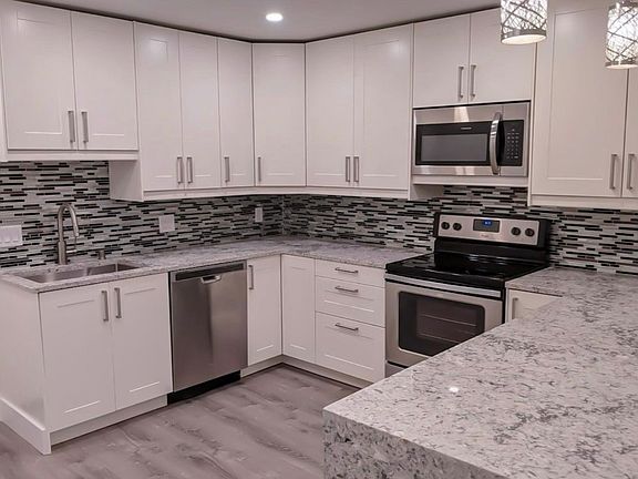 New finishesAmple cabinetryNatural lightUpdated appliancesSleek kitchenAiry inviting feelAir conditioning