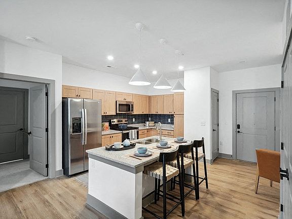 - Exterior features: Barbecue, Concierge, Cozy pool-side cabanas with fire pits, EV charging stations, Enclosed garages available, Golf simulator, Granite countertops, Inviting resident clubroom, Java bar, Meeting pods with Wi-Fi, Modern cabinetry, Pendant lighting, Pet Park, Pet Washing Station, Private patios or balconies in select units, Resident events, Schlage Smart Locks, Stainless steel appliances, Stylish tile backsplash in kitchen, Wood-style plank flooring, Yoga studio