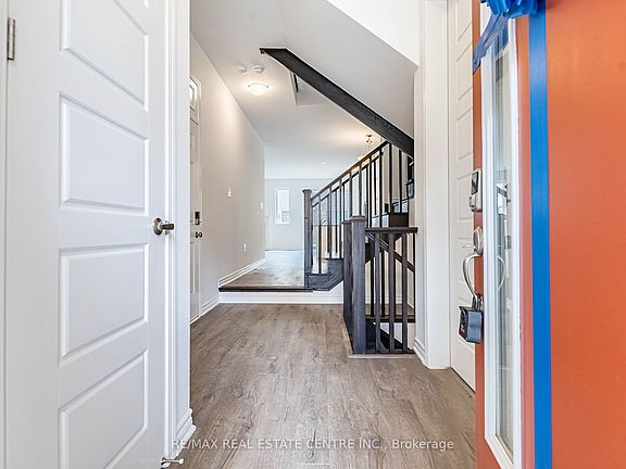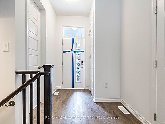 Welcome to this an year old New Townhouse having no side walk in front or side located in the highly sought-after neighbourhood of Milton! This stunning, carpet-free 3-bedroom home is loaded with upgrades and modern finishes, offering style, comfort, and convenience. Enjoy 9 ft smooth ceilings on both the main and second floors, creating a bright and airy ambiance throughout. The open-concept main level features a formal dining area overlooking a chef's dream kitchen complete with upgraded stone countertops, designer backsplash, modern cabinetry, and stainless steel appliances. The spacious great room is filled with natural light and includes a fireplace and TV-ready feature wall, perfect for relaxing or entertaining guests. Elegant laminate flooring flows throughout the home, with an oak-stained staircase leading to the upper level. The primary suite offers a large 4-piece ensuite and walk-in closet, while the second and third bedrooms are generously sized ideal for children, guests, or a home office. A convenient second-floor laundry room adds to the home's functionality. Additional highlights include direct access from the garage and a two-story layout that maximizes space and light. Located close to schools, parks, shopping, and highways, this home is perfect for families seeking a modern lifestyle in a prime Milton location. Tenant responsible for all utilities, snow removal, and lawn care. No smoking and no pets. Don't miss your chance to call this beautiful townhouse your new home