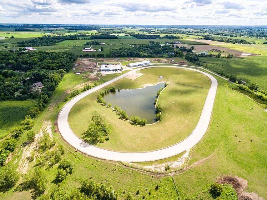 A truly remarkable TURN-KEY EQUESTRIAN FACILITY on 56 fenced acres. 9 miles west of I-94. 20 miles from Racine, 30 miles from Milwaukee, 70 miles from Chicago. Facility has 13 fenced pastures with Automatic Water, 4 dry lots and 2 round pens, 2.5 acre stocked pond with beach, 5/8 mile limestone track, 100 x 200 sand based lighted outdoor riding arena, 60 x 200 insulated sand based indoor arena, hay/equipment storage shed, 42 matted stalls with windows and indoor watering system,4 tack rooms, 8 stalls with direct turnout to dry lots/pastures, 4 wash areas with hot/cold, 2 heated bath rooms, lounge with kitchenette & Laundry room, Office. Build your dream home and make your dream come true with your own facility.