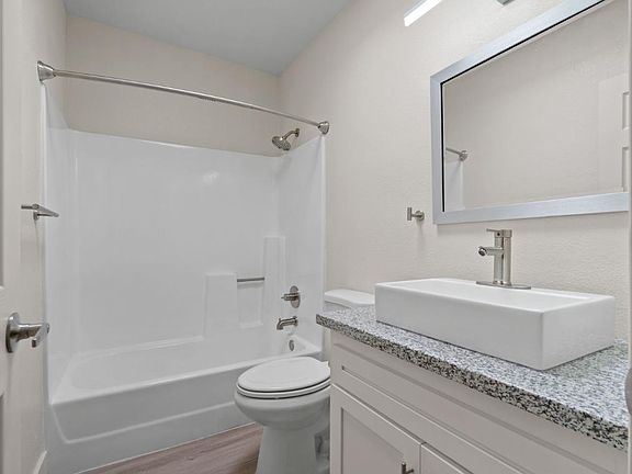 Large backyardQuartz countertopsWasher and dryerVinyl plank flooringBlack appliances