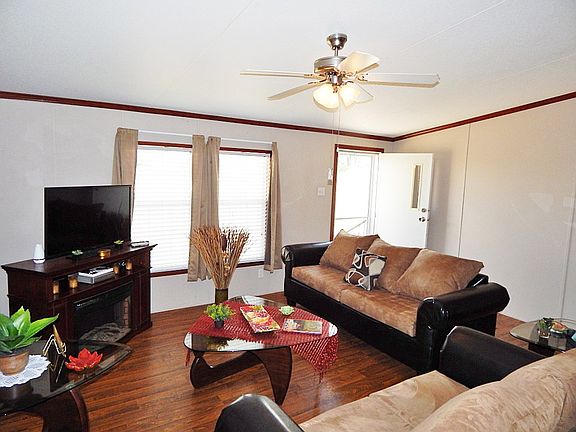 This 2012 manufactured home offers 1,120 sq.ft. of a spacious and open floor plan with 3 bedrooms and 2 bathrooms. The eat-in kitchen is all electric with black appliances and extra tall counters. It flows into the bright and airy living room, which is great for entertaining. The sequestered master suite has a large walk-in closet and tons of natural light. The in suite bathroom boasts a walk-in shower, separate garden tub, and dual sink vanity. Guest bedrooms have carpet with laminate wood floors throughout the rest of the house. This home also has an energy efficient package including double pane windows. Outside, you will find a large open patio and nice views in a quiet neighborhood. Call Stormie at 432-386-2268 for a showing!
