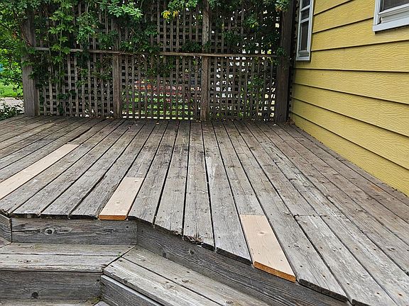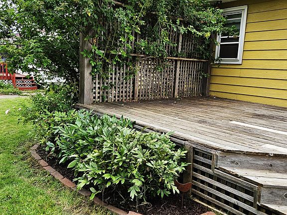Adorable 4 bedroom, 2 bath, 1.5 story bungalow home for you to make your own. This property has quick access to the highway, schools, shopping and more. This home features a maintenance-free exterior, a newer roof on both the house and the garage, spacious 2 plus car garage with new torsion spring on the automatic door opener and large work bench for projects and gardening with lots of storage. The gardens surround the home with mature pine and maple trees, climbing rose bushes that expand to the second floor and peonies that bloom in the spring. You’ll enjoy overlooking the flowering gardens from the expansive wood deck off the back of the house. Climb the stairs to the second floor to find bright finishes in all three upper bedrooms, large closets with ample storage, original hardwood floors throughout and an updated bathroom with beautiful pedestal sink and newer toilet. The kitchen and dining area feature an updated hardwood floor and window over the sink. The main floor has a full bath with an updated pedestal sink and toilet, bedroom with original hardwood floor and large living room with multiple windows to bring in lots of light. The finished basement space has plenty of room for an office space, or entertainment room with additional storage, utility room with large work bench and storage galore! This home features a large, deep lot with multiple garden areas and is just waiting for your personal touch, some TLC and an opportunity to make this house your own. Please note, the property is part of an estate sale and is being sold as-is. Don't miss out on this great investment!