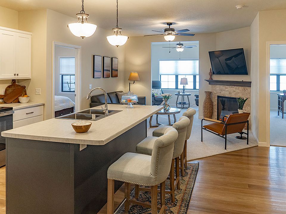 Well designed open floor plan with 2 bedrooms, 2 baths in our new 55+ The Fields on Sand Lake Luxury Condos high rise building. The unit is on the 1st floor and close to elevators and amenities. Enjoy top-notch amenities and easy access to restaurants, shopping, entertainment, grocery stores and medical facilities.