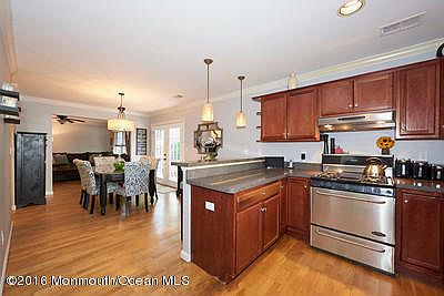 You will not get more house for the money than in this younger colonial home with over 2000 square feet of living space! Living room with stone surround gas fireplace, Kitchen with stainless steel appliances and pantry, Family room and Dining room all with hardwood floors and crown molding. Large master suite with full attached bath, all generous size bedrooms, and a closet big enough to be a play room. Sliders lead to a composite deck and stone patio. Beautiful trees and plantings abound in this fenced backyard. This home was not affected by Sandy and no flood insurance is required.