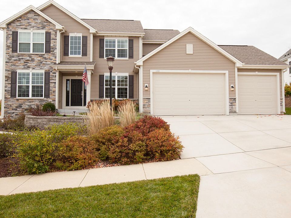 WAUKESHA. Gorgeous 4BR, 2.5BA 2 Story home w/ 3.5 car garage. Immaculate, move-in ready! Flowing open concept KIT, Dinette, GRT RM, Sunroom. Solid wood floors, cabinets, & designer SS appliances. Oversized Master suite w/ huge walk-in closet and Master Bath. New carpet throughout. Unfinished full exposure, walk-out basement with plumbing for a full bath ready for your design ideas. Addl features: 9' ceilings bsmnt & 1st floor, large Ipe deck, workshop, 2-story foyer. Located 2 minutes from I-94.