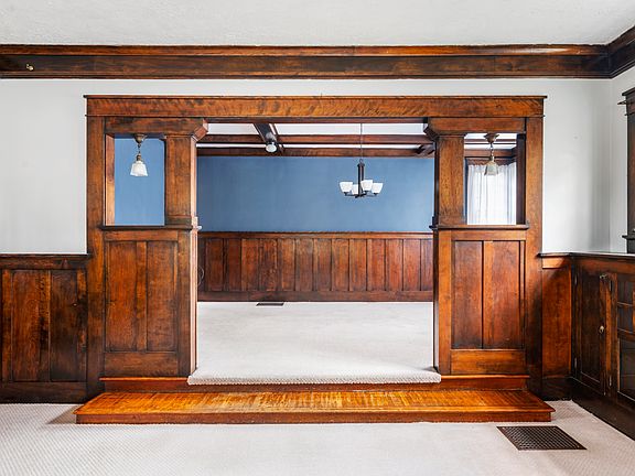 Introducing 1700 Grand Ave. in New Castle! This early 20th-century Craftsman home, boasting 2,504 sq. ft. of living space, combines historic charm with modern elegance. With four bedrooms and one and a half baths, this home is a true masterpiece. As you step inside, you'll be captivated by the rich walnut woodwork and wainscoting that gracefully adorns every corner. The dining room features a coffered ceiling, adding a touch of sophistication to every meal. The beautifully remodeled kitchen is a chef's dream, complete with stainless steel appliances and handmade butcher block countertops crafted from hand picked slabs of walnut, a testament to the current owner's dedication to quality. The 27 ft. deep, two-car garage allows for plenty of workshop space, while the large covered front porch invites you to unwind and soak in the fresh air. Built-ins throughout the home provide both practicality and charm. The bathrooms have been thoughtfully updated, ensuring modern comfort while maintaining the home's classic character. This Craftsman masterpiece is a rare find, meticulously maintained, and ready to welcome its next owner into a world of historic beauty and contemporary comfort. Don't miss your chance to make this house your forever home!