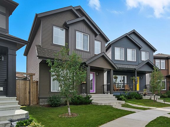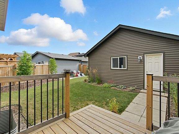 Welcome to this beautifully maintained, quality-built LANDMARK HOME—ideal for first-time buyers or those looking to invest in a growing community. Nestled on a landscaped pie-shaped lot, offering plenty of outdoor space for entertaining & relaxation. Step inside to discover the bright, open-concept main floor with vinyl plank flooring throughout. Spacious LR features a lg front window that floods the space with natural light. The kitchen hosts an abundance of cabinetry, quartz countertops, SS appliances & an island & adjoining dining space. Upstairs, the generously sized primary suite boasts two LG windows, a walk-in closet & 3-piece ensuite. Two additional bdrms, main bath & convenient upstairs laundry complete this level. The partially framed basement offers great potential & awaits your personal touch. Enjoy the added value of a 22x22 double detached garage. Don’t miss your chance to own a move-in-ready home in the desirable Graydon Hill community—close to parks, walking trails, and all amenities!