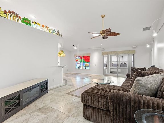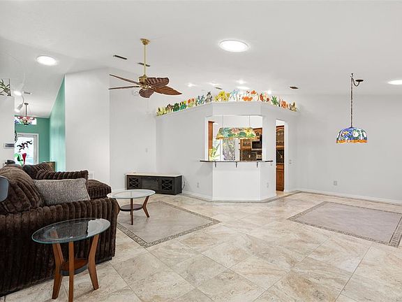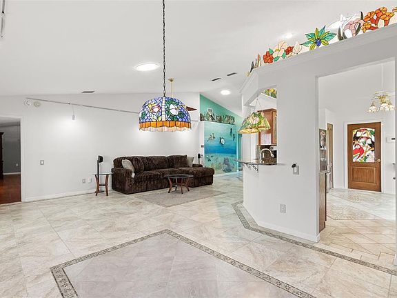 Unique and beautiful home in the heart of Tarpon Springs! Only 1 mile to the historic Sponge Docks and minutes to US-19, restaurants, and shopping. A short walk or bike ride (½ mile) to the Pinellas Trail. Sunset Beach is just 2 miles from downtown Tarpon Springs, Fred Howard Park Beach is approx. 5 miles, and the Anclote River runs directly through the Sponge Docks—making water activities and beach time convenient and part of your lifestyle. HIGH & DRY. NO FLOOD ZONE. The seller is the original owner, and the home was built in 1995 by Plute homes with the sellers participation and has extensive upgrades and custom features. Water pipes are COPPER (NON-RUST), and a retaining wall was built at construction. In 2006 AN ADDITION TO THE HOME ADDED. The seller designed and added 682 sq. ft., expanding all 3 bedrooms to nearly double their original size, each with cathedral ceilings and extra closet space. TRANE CENTRAL HEAT/AIR CONDITIONER (2018), SOLAR LIGHTS (2018), TANKLESS HOT WATER HEATER (2022), and NEW ROOF (2023). NEW SOUTH IMPACT HURRICANE WINDOWS (2020) ALL NEW APPLIANCES (2021). Enclosed housed working HOT TUB. Updated kitchen and bathrooms. Tile floors and laminated. The Florida room is air-conditioned with central HVAC duct plus its own split unit (approx. 420 sq. ft. ADDITOINAL SQ FT not included in heated sq. ft.). Oversized garage with custom garage door, workspace, and storage. CUSTOM HANDMADE STAIN GLASS (removable) convey. Landscaped LOT (98x105) with private backyard, custom hot tub, and outdoor living space. Front glass screen door and stained-glass feature window add curb appeal. Well-maintained and move-in ready. This home is a rare find and a true value.