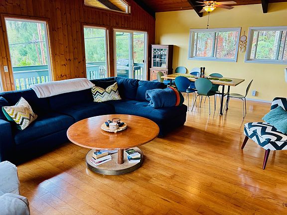 This spacious 1-bedroom ocean view condo in Haiku is part of a lush jungle property that spans 2 acres along Maliko gulch + and previously used as housing for a surf school! There are a total of 5 units, 3 are rented full-time. We use 2 when we visit the property 2-3 months a year and are looking for someone that is interested in renting March-November. This unit is fully furnished, making it easy to settle in! The well-equipped kitchen features an electric stove and oven, full size refrigerator/freezer, toaster, blender, pantry, dishes, pots & pans, bowls, etc. large walk-in shower, toilet, sink/cabinet and closet. The King bedroom includes a dresser and desk (great spot to work remotely), comfy bedding and linens, closet. The open concept living/dining space offers a beautiful view of the ocean one direction and the wrap around deck lots of outdoor living space and a view of Haleakala as well. Shared laundry with second one-bedroom unit can be found on the main floor. Parking and utilities included. Property secured by a gate. Close to shopping, restaurants and just 10 minutes from the beach. Professional monthly cleaning required to maintain the unit. The property contains two buildings that were once used to house students coming to learn to surf. There are a total of 5 condos on the property and 3 of the units contain family members. We rent the other 2 units to traveling professionals, family and friends. Please note that the property is shared with one dog, one kitty and a lot of frogs! This unit is on the upper floor of building one, with one additional unit below it. Both can be rented in tandem if additional space is needed. One parking space is available adjacent to the unit. The property spans 2 acres along the gulch and is filled with lush a lush jungle, views of the ocean, a bounty of fruit trees and shared spaces (laundry for upper units, property center deck). Owner pays utilities. No smoking, no pets, no large parties. No more than 2 people (Or 2 adults/one small child). Monthly cleaning service required. One car - 2 negotiable. 6 months or longer.