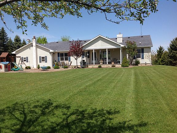 Beautiful ranch, 20 acres, deep lot, pond, horseshoe driveway, mature trees, 2 kitchens 1 in mother-in-law apartment, new High effiency furnace,and filtration system finished basement with 6 daylight glass lock windows& textured block basement walls, large walkin pantry, 3 bedrooms, solid surface countertop, 2 1/2 car garage, epxy floor, 3 patio's/2 covered, front porch, 40 x 56 pole barn, with (2) 12' and (1) 10' overhead electric controlled doors ,trench drain system, 220-50 amp power, running water, storage loft, glass block windows all in the barn, gas fireplace, Master bath with jetted tub & separate shower, first floor laundry, custom wood blinds, appliances stay, freshly painted rooms &3000 white pines at rear of property for excellent wildlife cover and 1000 white spruce at front with large 11 acre hay field in middle of land that produces about 110 round bales per year for added income! Also available is a John Deere 4400 compact tractor with cab ,loader and implements like : box blade ,front snow plow, 72" finish mower and pallet forks as well as a new cub cadet 60" zero turn mower , and 20' storage container behind barn! These Items will all be available at an additional price! Phone#s 810-378-5778 or 810-300-6983
