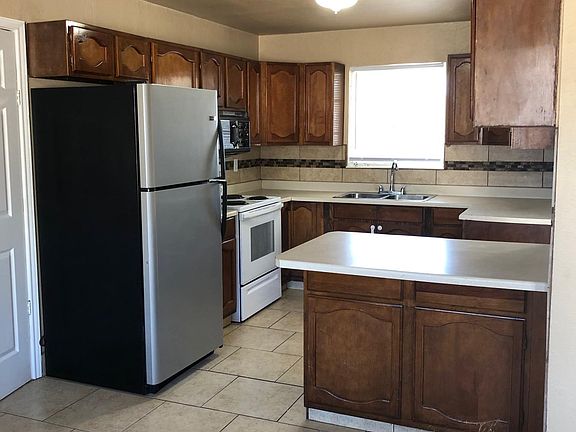 Price reduced!! 4 bedroom, 1.75 bath. Approx 1400 sq ft. Fresh paint. Refrigerated air. Tiled throughout. Large living room. Eat-in kitchen with refrigerator & stove. Roomy master bedroom with walk-in closet. Washer/dryer hookups. Refrigerated air. Back yard has a covered patio along the back of the house. Pet on approval. Available now. 1 year lease. Tenant pays all utilities. Pet on approval.