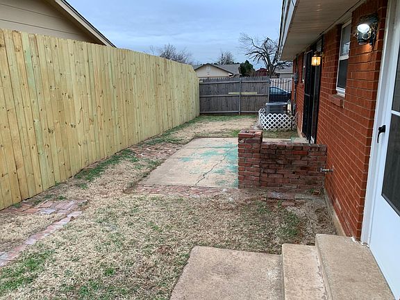 New water heater, New Ceiling Fans, New entry doors, New gas stove, Large garden shed, Large Fenced yard, Recently sodded, Well insulated attic, Large living area, Galley Kitchen, Flower/Garden beds in back yard, close to school, easy access to I-35 and Moore shopping, Close to nice park 2 bed 1 1/2 bath, 1426 sft, with large fenced yard. Approved pets with non-refundable pet fee. $1250. $50 discount monthly for early pay. One month Security deposit. $50 application fee with credit and background check per occupant over 18 or apply via zillow. 1 year lease term Tenant to provide Refrigerator, Washer, and Dryer. $200non-refundable pet fee per approved pet. Lawn - $200deposit to guarantee lawn and garden is maintained.