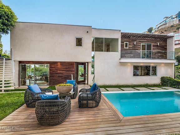 Modern masterpiece with views above the Sunset Strip. Private and gated, this incredible Hollywood Hills architectural estate exemplifies high-end luxury. A grand two-story entrance with floor-to-ceiling windows leads to the generous entertaining spaces on the main floor. The state-of-the art chef's kitchen features Miele appliances, stainless steel backsplash, walnut walls, immense center island, dual ovens and dishwashers, refrigerated drawers, and more. Upstairs are 3 en-suite bedrooms, including the jaw-dropping master suite with city views and outdoor area. A 4th en-suite bedroom, screening room, and den/game room are found on the lower level. The backyard is a private oasis, with infinity edge pool, spa, and grassy lawn. Chic high-end finishes throughout, including, Italian tile, butcher block floating staircase, Jerusalem stone accents, Low-E glass. Located minutes from Sunset Strip, Beverly Hills, and West Hollywood, this is a trophy property for the most discerning of buyers.