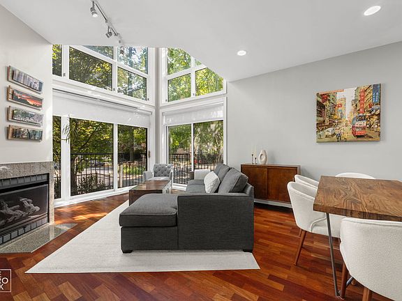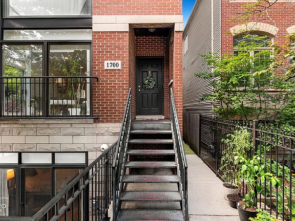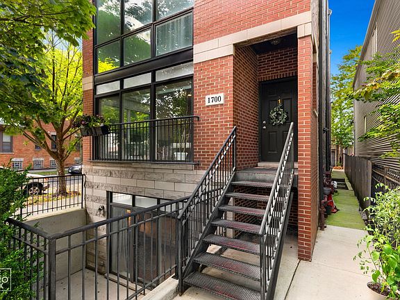 Three-Level Corner Condo with Private Entry. Just four blocks from the Blue Line in Logan Square/West Bucktown, this rare tri-plex lives like a single-family home with incredible natural light and thoughtful design throughout. Floor-to-ceiling, two-story windows illuminate the open living areas, highlighting hardwood floors and modern finishes. The flexible layout offers 3 bedrooms plus a den and 2.5 baths, with a bath on each level for convenience. The professionally designed kitchen features a large island, while spa-like baths, custom closets, and custom window treatments add style and function. Two private outdoor spaces-front and back-extend the living experience and are perfect for entertaining or relaxing. One garage parking space completes this one-of-a-kind home.