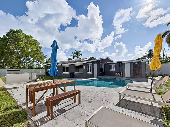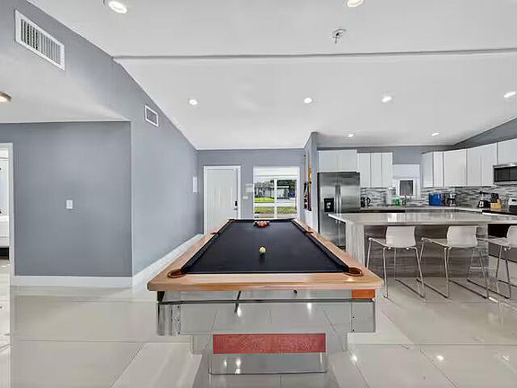 Discover this stunning one-story pool home retreat in the heart of Fort Lauderdale's desirable Lake Aire Palm View neighborhood. New Roof as 2024, and new Island! Perfect blend of vintage, charm and contemporary flair. Perfect for investors, already Airbnb Ready!! Newly updated, this bright and breezy 3 bed, 2 bath home spans generous 9,610 sq ft corner lot. Modern Italian-inspired kitchen featuring sleek quartz countertops, stainless-steel appliances, and an open layout that effortlessly flows into a spacious family rooms. Ideal for gatherings and entertaining. Resort-style backyard complete with a shimmering pool and spa, expansive patio, built-in BBQ and bar setup with your private paradise for relaxing under the Florida sun. All Furniture will be included! Yes the pool table is incl!