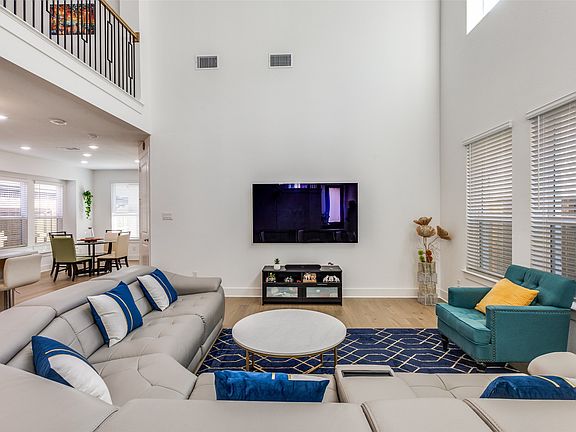 Built by Highland Homes. Luxurious two-story home exudes charm with white brick facade and inviting front porch. Inside, be captivated by soaring ceilings in the entry and living area. The spacious kitchen boasts ample storage, Stainless Steel appliances, upper cabinets, and stunning quartz countertops. Retreat to the primary suite with its luxurious En-Suite bath featuring a drop-in tub and separate shower. Elegant tile upgrades throughout complete this picture-perfect home!