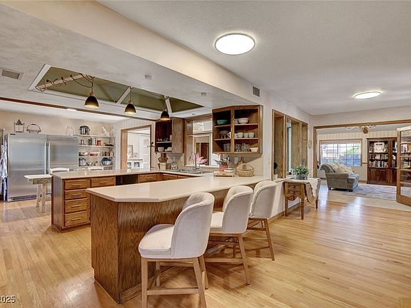 BOMB SHELTER • PAID-OFF SOLAR • PRIVATE INDOOR SHOOTING RANGE One-of-a-kind estate offering security, sustainability, and lifestyle. Underground bomb shelter built with reinforced concrete includes a bank-vault door, escape hatch, decontamination area, air filtration, and hidden panic room with multiple concealed entries. Paid-off solar ensures energy independence. Features also include a private indoor shooting range, long-term food storage with rolling shelves, and a 1,405 sq ft finished basement ideal for gym, theater, or creative space. Sitting on a .46-acre lot in a private 8-home cul-de-sac, the property boasts vaulted ceilings, atrium dining with glass ceiling, greenhouse with 8-ft pond, electric RV gate, and a backyard with mature trees. Community amenities include 24/7 access to a gated pool, spa, basketball & tennis courts.