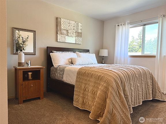Step inside this charming two bedroom, 1.75 bath Sunrise West condominium offering 961 ft.² of inviting living space. The floor plan is filled with natural light, perfect for relaxing or entertaining. A spacious living room with a soft accent wall flows seamlessly into the dining area & out to your private balcony. The thoughtfully designed kitchen features warm oak cabinets, Updated hardware & plenty of counter space. Retreat to the stylish primary suite with its own private bath, while the second bedroom is ideal for guests, a Home office, or creative space. Conveniently located near NAS Whidbey, shopping, dining, bus routes, & outdoor activities. This home blends, comfort and convenience. – your Whidbey Island lifestyle awaits.