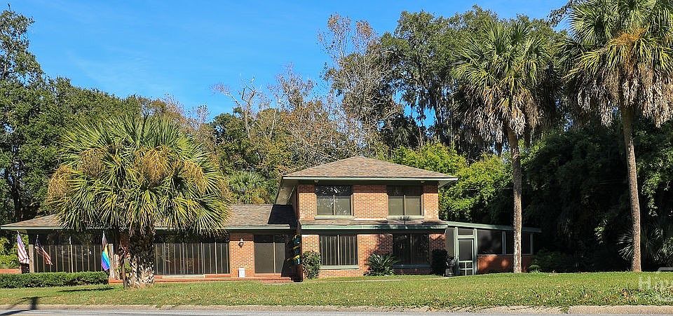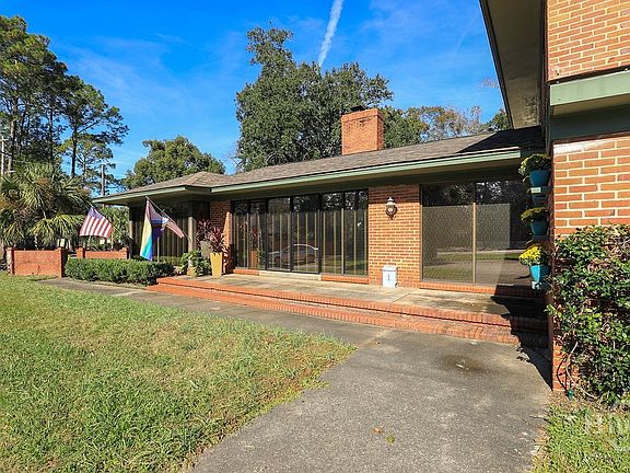 Georgeus in Gordonston. This all brick home was designed by local architect Oscar Hansen and built for Carl Olscheig Jr in 1948. Zoned RIP with flex space currently used as a salon, but has potential for in-law suite or other business. The home features a large commercial garage and ample off street parking. The main living area has been thoughfully updated with cork flooring.There is a wood burning masonry fireplace in the living room, spacious sunroom and screened porch with spa. The large kitchen has stainless appliances and ample counter space. A primary suite and two additional bedrooms and one bath are located on the second floor. The large private lot has been beautifuly landscaped.