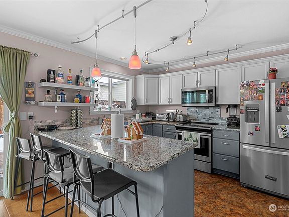 SELLER WILL PAY UP TO 5,000 OF BUYER'S CLOSING COSTS! Well maintained & recently updated home with 3 bedrooms AND office. Main floor primary is a bonus! 2 updated bathrooms. Updates include interior paint, crown molding, window sills, baseboards, granite kitchen countertops, refinished kitchen cabinets, new range, fridge & microwave. Open concept kitchen and dining with new slider leads to large covered trex type deck. Sun shades and low maintenance yard with new fence and wiring for a hot tub. Nice separation of space with a 3/4 bath and 2 bedrooms upstairs, one with large private deck with amazing views! Large laundry room with folding area leads to the attached garage. You will love all the updates in this amazing home!