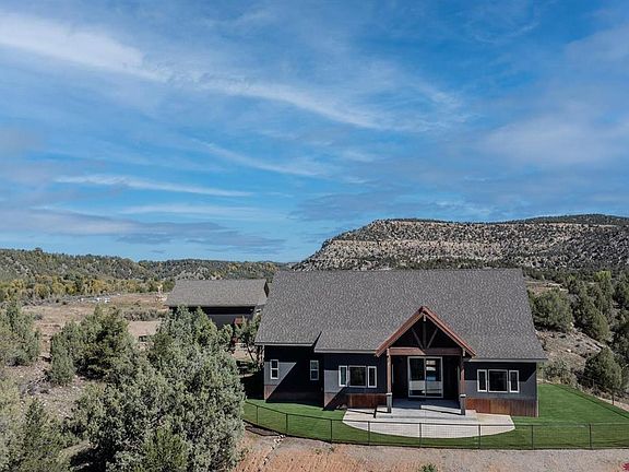 This exceptional 3,278 sq ft custom-built home is nestled within a gated community on 35 acres of pristine Colorado countryside, offering unparalleled privacy, sweeping mountain views, and a lifestyle immersed in nature. With private access to the Florida River for fishing and hiking—and direct ATV access (with proper permits) to approximately 44,000 acres of Southern Ute Tribal land—this property is a dream for outdoor enthusiasts. Thoughtfully designed to blend rustic charm with modern luxury, the home features an open-concept layout that’s perfect for both everyday living and effortless entertaining. The spacious living area is anchored by engineered hardwood floors, an energy-efficient gas stove, and expansive high-end windows that flood the space with natural light. Tongue-and-groove ceilings add warmth and architectural character, tying the home’s inviting spaces together. At the heart of the home is a stunning chef’s kitchen, outfitted with exquisite granite countertops, a massive island with bar seating, custom soft-close wood cabinetry, and an undermount sink with designer fixtures. Premium stainless-steel appliances and rustic-chic lighting elevate the space, which flows seamlessly into the dining area and out onto a covered patio—perfect for alfresco meals with breathtaking mountain views. The luxurious primary suite provides a serene retreat, featuring large windows that frame tranquil vistas, a spa-inspired en suite bath, and an oversized walk-in closet. Furniture is included, making this space truly move-in ready. Two additional bedrooms share a beautifully appointed full bathroom, while a well-positioned office near the entry and a stylish powder room add versatility and functionality to the main level. Upstairs, a spacious bonus room offers the ultimate entertainment space—complete with a pool table, shuffleboard, lounge furniture (all included), a private bathroom, and a custom bar area with a wine refrigerator. Whether used as a game room, guest suite, or media lounge, this space adapts easily to your lifestyle. Every detail of the property has been thoughtfully upgraded, including a brand-new, top-of-the-line reverse osmosis system serving the entire home, a 1,000-gallon buried propane tank, and a newly installed solar-powered entry gate. The home is surrounded by fresh landscaping, and is equipped with forced air heating and air conditioning for year-round comfort. A high-producing 65-gallon-per-minute well supports up to three single-family dwellings and up to one acre of irrigation—providing peace of mind and plenty of future flexibility. An attached three-car garage offers ample storage for vehicles, gear, and outdoor toys, while the newly constructed 40’ x 35’ shop provides even more space for an RV, workshop, or recreational equipment. Whether you’re seeking tranquility, adventure, or a deeper connection to the land, this remarkable property delivers on all fronts. Surrounded by stunning natural beauty, abundant wildlife, and endless opportunities for recreation—yet just a short drive from town—this is Colorado living at its finest.