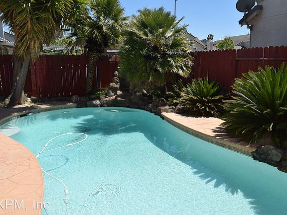 This meticulously crafted home located in the heart of Tracy was recently remodeled. This unique floor plan offers 5 bedrooms and 2.5 baths. As you enter the residence, the two-story entry with high ceilings invites you into a spacious formal living room with a fireplace. The kitchen features built-in cabinets, granite countertops, and a pantry for extra room to store your groceries. Downstairs is also the location of the very sizable master bedroom, with a shower, built in tub, two closets, and his and her sinks that provide plenty of space to get ready for your day. Walking out of the master there is a luxurious pool with palm trees surrounding it that will make you feel like you're on vacation in your own backyard. Upstairs are 4 bedrooms, a bathroom, and even a mini loft ideal for working at home. Close to schools, shopping, and the freeway you won't want to miss this one of a kind home if you are looking in the area. Renter Responsible for all utilities and pool maintenance. NO PETS ALLOWED.