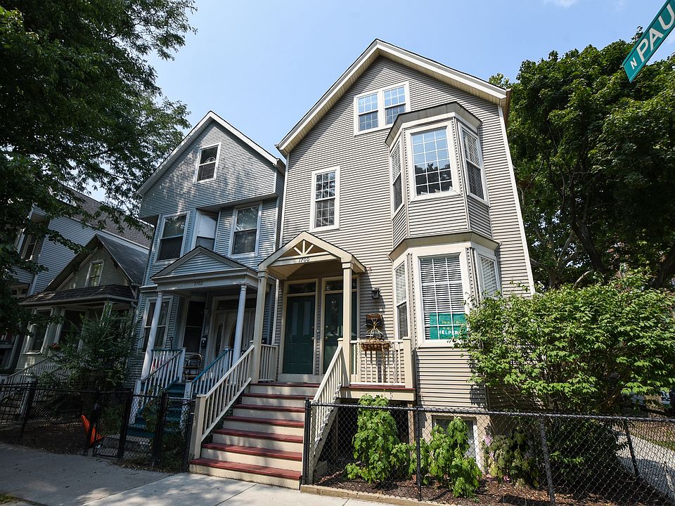 Prime heart of Lakeview location on highly sought after, tree lined quaint one-way street! This light filled penthouse level 3 bed / 2 bath duplex up has it all and feels like single family living on the corner of Paulina & School! Enter your private entrance foyer up to main level. Main level is drenched in natural light and boasts hardwood floors, open kitchen with 42' Maple Cabs, granite counters & stainless apps. Gracious living & dining room newly tiled gas fireplace, bay window with custom reading nook seating, full bath, 3rd bedroom & side by side laundry. 2nd level features 2nd bed, one full bath plus an extra-large master bed w/vaulted ceiling, with additional room for a home office + space for a true master bath or walk in closet to be built out! Options are endless with 3 generously sized split floor plan bedrooms. Professionally landscaped fully fenced patio off back deck. Live steps to everything Lakeview, Roscoe Village and the Southport Corridor have to offer! Easy access to Whole Foods, Target, Restaurants, Gym, Library, and Paulina brown line, all a single block from this phenomenal home. Parking available across the street $200 monthly. 2016: NEW HVAC & AC, 2017: NEW Water Heater + Oven, 2018: NEW Fridge, 2019: NEW Dishwasher + Microwave. $4500 in reserves, no specials, no anticipated work upcoming.