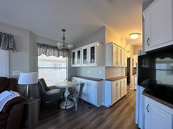 This beautifully maintained 2011 Champion park model is located in the heart of Shiprock RV Resort, a 55+ gated community in Apache Junction. Recently updated in 2025, the home features fresh exterior paint, a spacious air-conditioned bonus room, a large shed, and a generous full-length deck-perfect for outdoor living and enjoying scenic desert skies. Inside, the efficient galley kitchen includes a refrigerator, oven/range, microwave, and laminate counters. The home is being sold furnished and features updated vinyl plank flooring, central A/C, a heat pump, and an additional wall unit in the bonus space for added climate control. Positioned to capture stunning Superstition Mountain views, this home also includes a covered patio, carport, workshop space, and is ideally located for those who want to take advantage of the community's resort-style amenities. The annual land lease is just $6,000 and includes access to the clubhouse, pool, spa, fitness center, golf, laundry facilities, and community events-all within a secure, pet-friendly environment designed for active adult living. #ShiprockResort #ApacheJunctionAZ #ChampionParkModel #55PlusLiving #AffordableArizonaRetirement #MountainViews #SnowbirdHome #DesertLiving #ActiveAdultCommunity #MesaSnowbirds