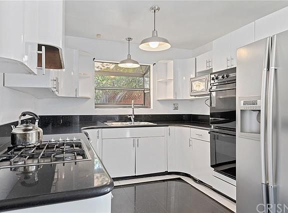Granada Hills Charter High School! Discover this Granada Hills residence, the idyllic choice for those who desire one of Granada Hills most popular neighborhoods. Situated on a peaceful cul-de-sac north of Rinaldi and west of Balboa, this delightful abode welcomes you with regal double doors that reveal a bright and inviting layout. Tasteful tile flooring cascades underfoot, beautifully complementing the crisp white tones throughout. Recessed lighting illuminates the main gathering areas, including the living room where guests can enjoy conversations by the fireplace. Natural light fills both the dining room and the kitchen, equipped with a gas range, double ovens, and white cabinetry. Soft carpet and ceiling fans allow you to unwind comfortably in the bedrooms, including the primary suite with its own fireplace and a soaking tub in the ensuite. An entertainers haven, the fully fenced-in backyard has plenty of room for your BBQ while a pool and spa are waiting for you to take a refreshing dip. Come for a tour to see all that this stunning home offers!