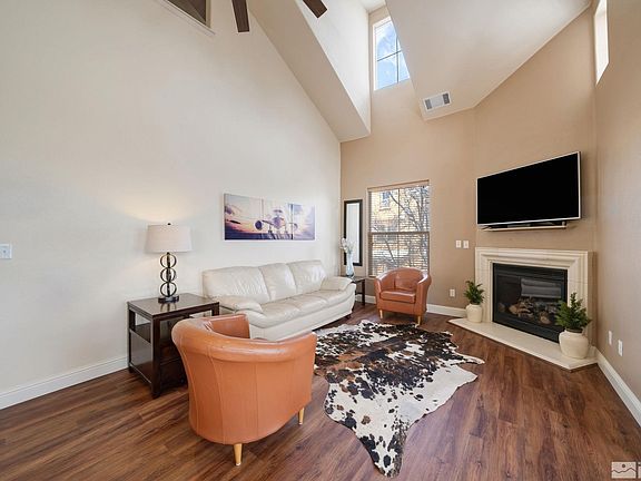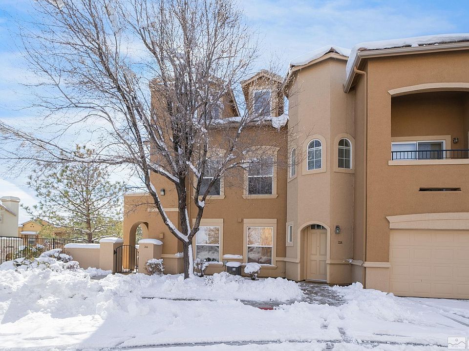 Sophisticated, low-maintenance living in a luxurious townhome! Nestled within the sought-after Fallen Leaf neighborhood of Galena, this stunning residence is situated in a peaceful gated community with private access. Boasting 1728 sq ft of living space across 2 stories, this meticulously maintained home offers 2 bedrooms, 2 bathrooms, and an attached 2-car garage with additional storage space., The well-thought design elements include tall ceilings and expansive windows that flood the home with natural light, complementing the inviting paint hues and wood-look laminate flooring. The kitchen features ample cabinetry, a gas range, built-in microwave, pantry, and a door opening to a private, covered balcony. Adjacent, the open concept dining room and living room are highlighted by a gas log fireplace, stunning city views, and a door that leads to a sunny, uncovered patio. Retreat to the primary bedroom with its mountain views, walk-in closet, and sprawling ensuite bathroom offering double sinks, a garden tub, and separate shower stall. The comfortable guest room offers a sliding glass door that opens to a discreet patio overlooking the community. Enjoy the convenience of a separate laundry room with shelving and a generous loft providing endless possibilities for use. Whether you need a home office, gym, guest room, or hobby area, this versatile space has you covered. HOA amenities include common area maintenance, full landscaping, pool, spa, and clubhouse access. Conveniently located near all South Reno's most popular amenities, this property is close to several schools, parks, shopping centers, the Summit Sierra Mall, and freeway access. Plus, enjoy being less than 20 minutes from Mt Rose Ski Resort and 30 minutes from Incline Village. With a new water heater and included appliances such as the gas range, refrigerator, washer, and dryer, this townhome presents a fantastic opportunity for first-time buyers, retirees, investors, and everyone in between. Don't miss out on a chance to see this impeccable townhome in a prime location – schedule your showing today!