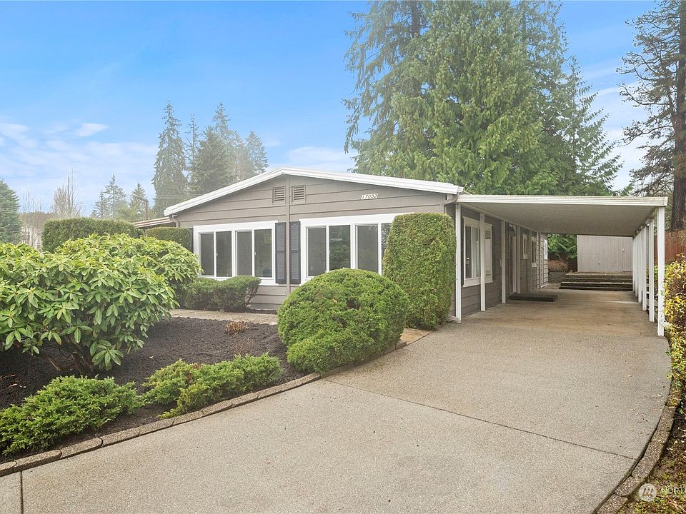 Fully Renovated in the Coveted Woodcrest Estates (Age 55+ community) where you own the land! Home features: Spacious open floor plan feeling bigger than it is with entertaining living room, Chefs kitchen & new stainless appliances. 2 upgraded bathrooms w Quartz countertops & stylish cabinets, lifetime PVC roof. New waterproof flooring, new paint inside & out, new doors, millwork, hardware, professional landscaping & more. A/C for those Hot summer days. Community features include: Clubhouse w a full kitchen & library, heated indoor pool and hot tub, RV/ boat parking, on site HOA office & weekly activities. Attached 2 car covered carport w additional storage shed. Enjoy the private, secluded greenbelt. Minutes from i405 & downtown Woodinville