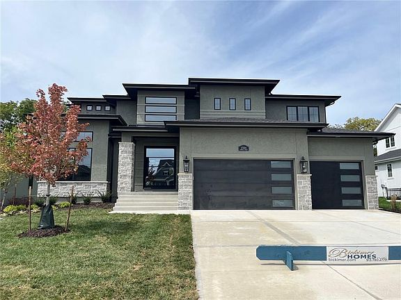The stunning Roosevelt 1.5 Story by Bickimer is READY FOR MOVE IN on Lot 210 backing to green space with large trees. A truly unique floor plan and so many reasons to fall in love with this home. Features include: Curved open staircase, huge oversized modern black and clear glass front door that pivots open, premium RHINO black windows, long mud hall with door to the back yard, prep pantry hallway, main floor office, stunning kitchen with drop in Thermador range with griddle, upgraded curved wood vent hood, upstairs loft, reading nook, atrium style dinning room with large windows. This plan is a unique layout with grand two story great room with cast concrete fireplace and wood accent ceiling beams. Unique mud room hallway that passes through the pantry with a door out to 7' X 7' grill patio. Optional finished basement can be added with wet bar and stunning mid century modern TV accent feature wall with wood panels as photos from previous model home. All situated on a level lot with patio slider doors to a 12' X 19' covered patio to enjoy your back yard BBQ's and events with ease from the main level. Stucco exterior with real stone trim. Century Farms has a beautiful club house with fitness center and reading loft, pool with slide and fire pit, pickleball courts, kids play area and community garden. Come join the fun in Century Farms, a unique one of a kind upscale community in Overland Park. BLUE VALLEY SCHOOLS *Some photos are from a previous model home*