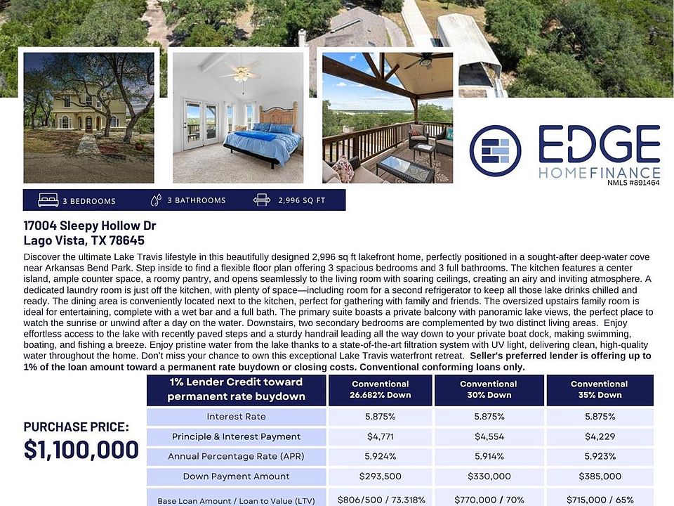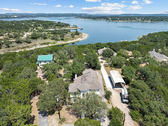 Discover the ultimate Lake Travis lifestyle in this beautifully designed 2,996 sq ft lakefront home, perfectly positioned in a sought-after deep-water cove near Arkansas Bend Park. With modern stucco exterior and a creative layout perfect for entertaining, this property is an exceptional blend of style, comfort, and true waterfront living. Step inside to find a flexible floor plan offering 3 spacious bedrooms and 3 full bathrooms. The kitchen features a center island, ample counter space, a roomy pantry, and opens seamlessly to the living room with soaring ceilings, creating an airy and inviting atmosphere. A dedicated laundry room is just off the kitchen, with plenty of space—including room for a second refrigerator to keep all those lake drinks chilled and ready. The dining area is conveniently located next to the kitchen, perfect for gathering with family and friends. The oversized upstairs family room is ideal for entertaining, complete with a wet bar and a full bath. The primary suite boasts a private balcony with panoramic lake views, the perfect place to watch the sunrise or unwind after a day on the water. Downstairs, two secondary bedrooms are complemented by two distinct living areas, providing plenty of space for family and guests. Enjoy effortless access to the lake with recently paved steps and a sturdy handrail leading all the way down to your private boat dock, making swimming, boating, and fishing a breeze. Whether you’re hosting gatherings in the generous living spaces or soaking in the tranquility of the cove, this property is designed to make every day feel like a vacation. As an added bonus, you'll be free from a monthly water bill as you enjoy pristine water from the lake thanks to a state-of-the-art filtration system with UV light, delivering clean, high-quality water throughout the home. Don’t miss your chance to own this exceptional Lake Travis waterfront retreat. Schedule your private showing today!