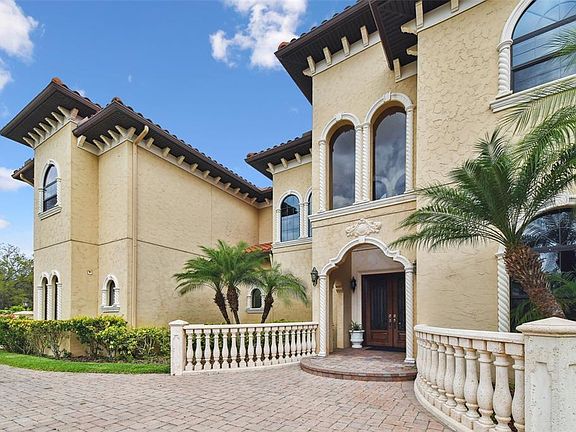 Villa Paradiso, a rare opportunity in Avila. At the end of a quiet cul-de-sac inside Avila Golf & Country Club, Tampa Bay's most exclusive 24/7 guard-gated community, Villa Paradiso is a masterpiece of refined luxury, superior craftsmanship and impeccable construction. A grand circular driveway leads to this Mediterranean estate, where double doors and a graceful double-height foyer create an unforgettable first impression. Polished marble floors reflect natural light beautifully, while intricate trim work, tray and coffered ceilings, elegant arches, and hand-carved stone columns add depth and sophistication. The formal living room, anchored by a majestic fireplace, offers stunning views of the pool and grand foyer. A full bar with a wine cellar flows seamlessly into the dining room, making it ideal for entertaining, with a nearby powder room for guests. Designed for grandeur and comfort, the home features an elevator, a formal staircase and a secondary back staircase for convenience. The primary suite, on the main level, overlooks the lush green preserve, offering a serene retreat. Its spa-like, all-marble bath boasts an oversized shower and exquisite finishes. A second bedroom with en suite is also on the first floor, ideal for guests or multi-generational living. Each of the six bedrooms includes its private full bath, ensuring privacy and comfort, complemented by a full pool bath. The kitchen and family room feature breathtaking conservation views, with French doors opening to the resort-style pool, creating an ideal space for entertaining and relaxation. A separate office and a game room with a wet bar complete this exceptional home. Villa Paradiso is a rare offering so don't miss this opportunity to make it yours.
