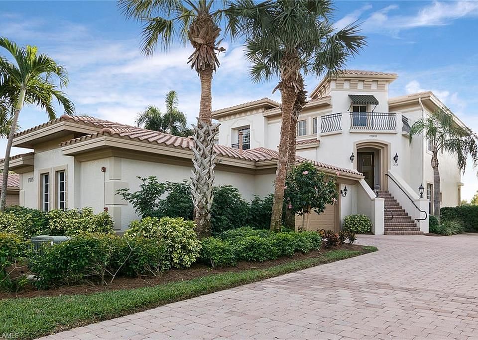 C.14437 - What an opportunity to own in Mediterra. Lowest priced second floor unit available! Long lake and golf course fairway views. French doors opens to grande entry. Arched staircase with wooden and wrought iron railings, neutral ceramic flooring and updated light fixtures. Huge great room open concept floor plan provides the best way to entertain friends and family. Separate area for dining off of the lovely kitchen. Updated appliances, nice pantry space and neutral granite countertops and cabinetry. Perfect office/den space provides the perfect spot to work or create. 2 spacious guest suites with updated baths. The owners suite is nicely appointed with en suite bath with large soaking tub and shower. Mechanicals have been all updated in the last 5 years to include the 2 AC's units. The exterior of the building was just recently painted a very neutral cream color. Spacious 2 car garage with extra storage space as well! Enjoy the evening sunsets from your covered lanai. Owners say bring them an offer and make this coach home your dream of living in Mediterra.