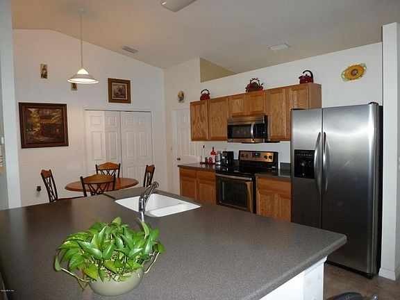 Immaculate 3 BR Morro Bay model in nice quite section of Marion Oaks. You will love the manicured lawn and landscaping! Enter into this 2000 SF home & formal dinning is on the right and formal living on the left. Step from foyer into the spacious living area with open kitchen and large kitchen island! Set up bar stools for the kids or use the breakfast nook area. The family living area separates the master suite from the guest bedrooms. The living area overlooks the screened lanai with beautiful ceramic tile. Spend mornings/evenings here while watching the kids play in the huge fenced in backyard. The privacy fence beckons you to put in a family pool! Back inside you will love your large pantry, inside laundry and 2 car garage with storage! No worries with your new 2017 AC.