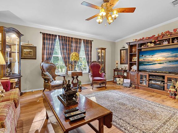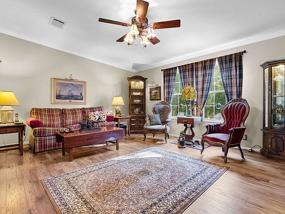 Nestled in the charming rural community of Wellborn, Florida, yet just minutes from town, this meticulously maintained 2013 home offers 2,160 square feet of heated and cooled living space on a generous 4.64-acre lot. With 3 bedrooms, 2 full bathrooms, and a desirable split floor plan, this move-in ready residence is perfect for those seeking both comfort and space. The heart of the home is the spacious kitchen, complete with a center island, which seamlessly flows into the large dining area and great room, creating an inviting atmosphere for family gatherings. A separate family room provides an excellent space for entertaining or a private retreat. Throughout the home, you’ll find upgraded lighting and decorative ceiling details that add a touch of elegance. Step outside onto the back deck to enjoy peaceful views of the grounds and wildlife, offering the perfect spot for relaxation in this tranquil setting. This home is truly a rural gem, offering the best of both worlds—serenity and convenience.
